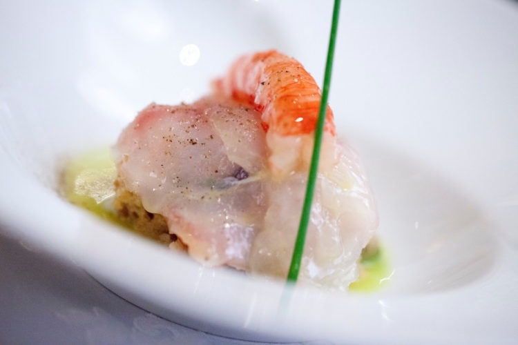 Questa volta abbiamo rivisitato la celebre Caprese e la serviamo calda accompagnata da scampi e filetti di ricciola crudi.