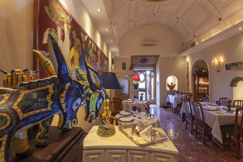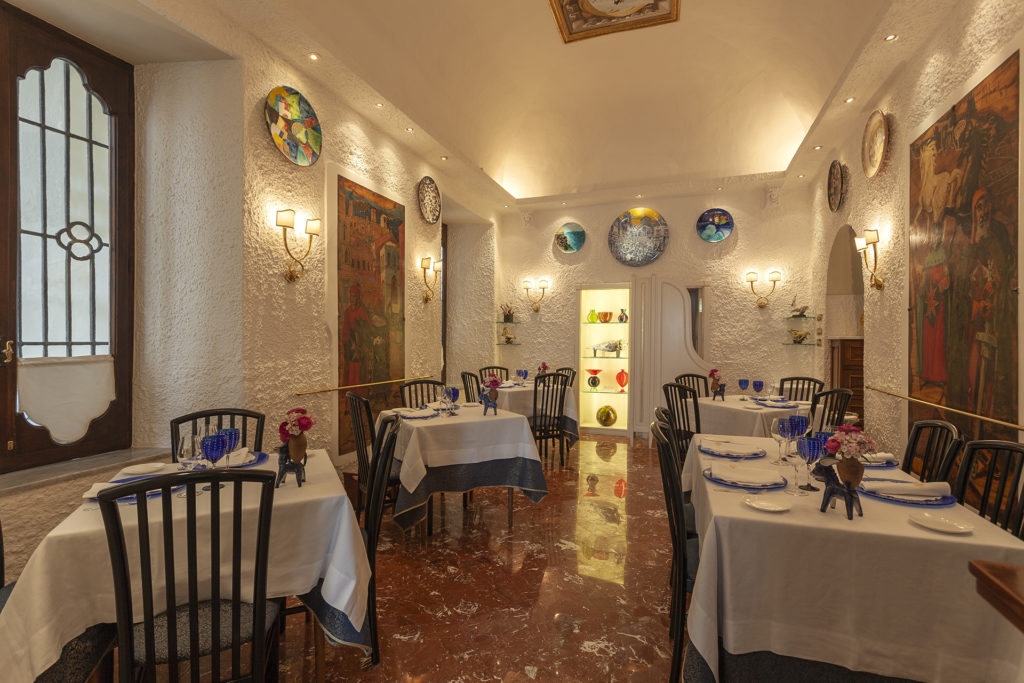 L’arredo e gli spazi del ristorante oggi sono simili a quelli originali, ovviamente conservati con tanti restauri e migliorie tecnologiche. Attualmente il pavimento è di marmo rarissimo, rosso Verona, gli intonaci ricci, il sogno di tanti architetti, i soffitti centenari e affrescati; i tessuti che tappezzano il ristorante sono sete di San Leucio di Alois, l’opificio del ‘700, fornitore del Vaticano e di tante Case Reali; le porcellane di RichardGinori, l’argenteria Sambonet disegnata da Giò Ponti, i cristalli di Murano, sono tesori.