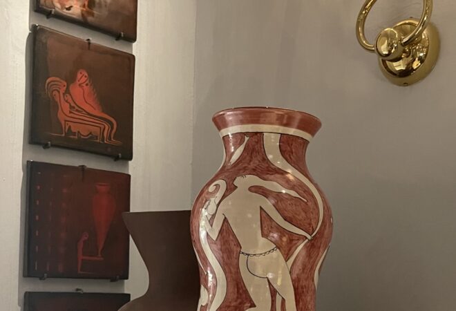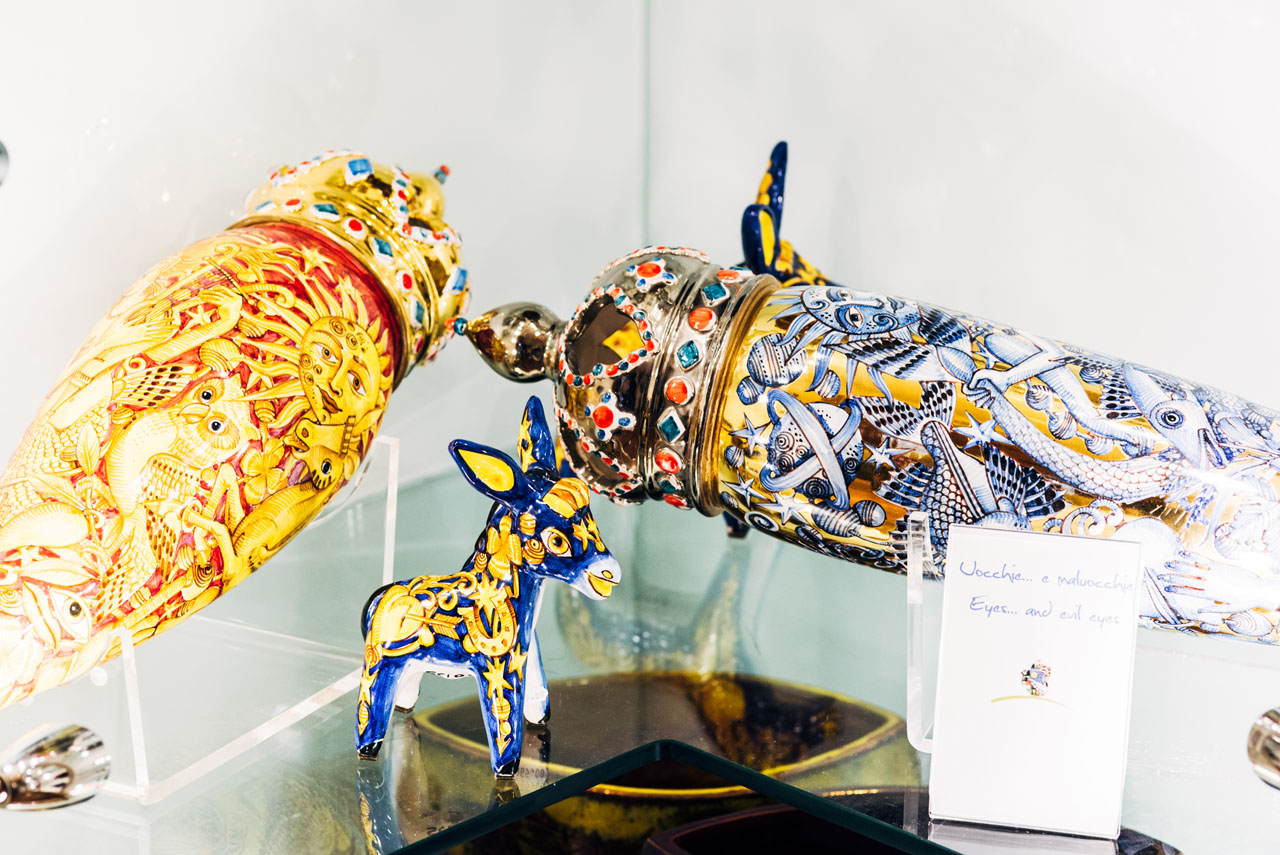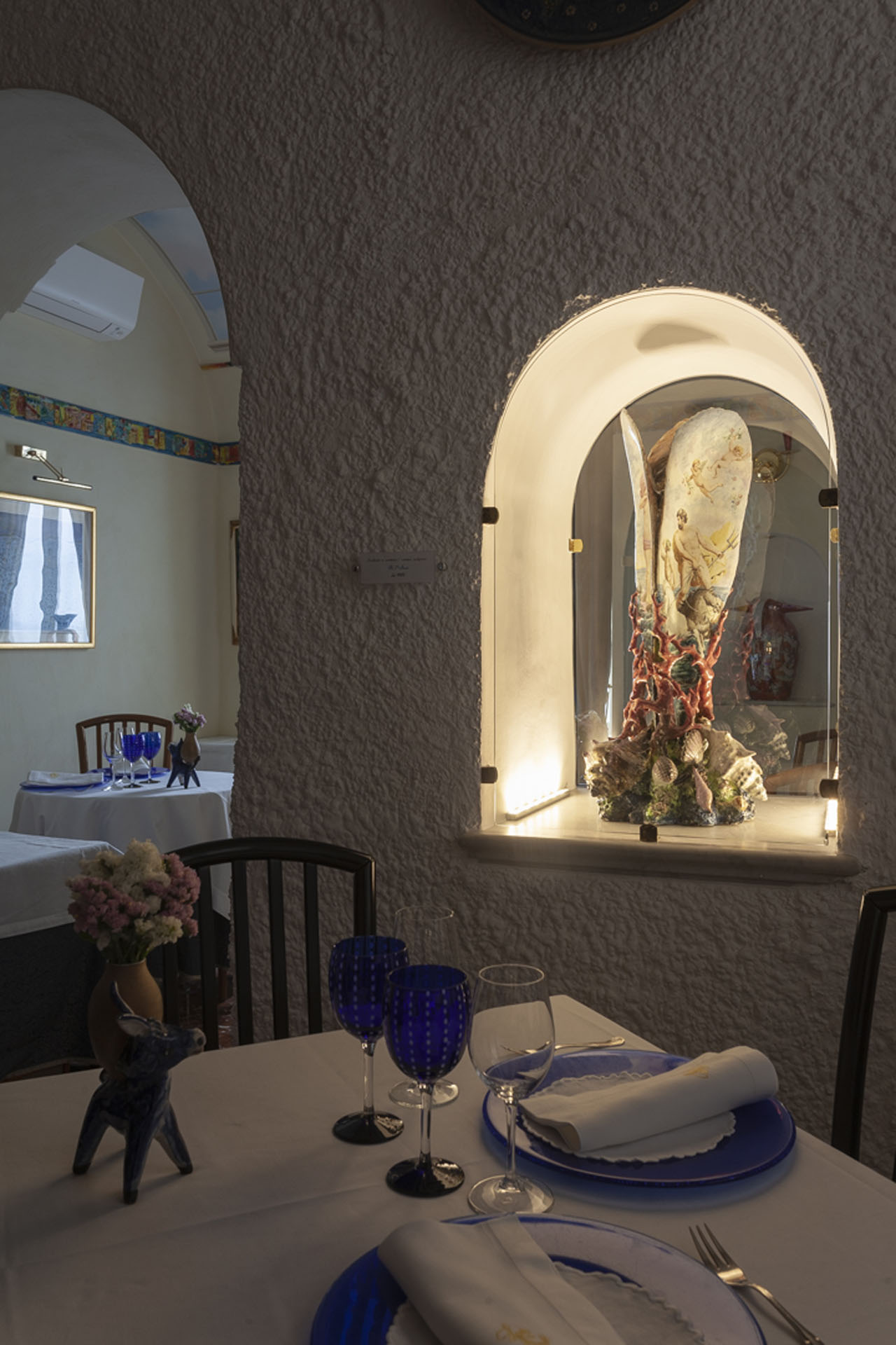 La collezione privata Caravella- Museo, racconta la nostra storia che inizia nel 1959, con la scoperta nei nostri depositi allora polverosi, nascosti, non frequentati da tanti anni, di tante opere d’arte. Per fortuna ci sono incontri che ci segnano l’esistenza in modo indelebile. Negli anni ‘90 una sera un famosissimo architetto, molte volte nostro ospite, dopo mie varie richieste di firmarmi il progetto della nuova La Caravella, mi disse: “Il tuo ristorante è unico, è magico, vedrai nel tempo…”. Mi consigliò e mi raccomandò di inserire altre ceramiche e di restaurare i soffitti antichissimi. Feci tesoro del suo consiglio, con orgoglio e con passione, mi sono impegnato attivamente ad esporre la collezione, preservarla, migliorarla e raccontarla, raccogliendo altro materiale e notizie grazie all’aiuto di tutti. Oggi La Caravella è un Ristorante-Museo, la sua collezione privata, esposta nel ristorante, è considerata tra le più importanti al mondo, attirando l’ammirazione e la curiosità di molti clienti, che arrivano non solo per la nostra cucina, ma anche solo per visitarlo.