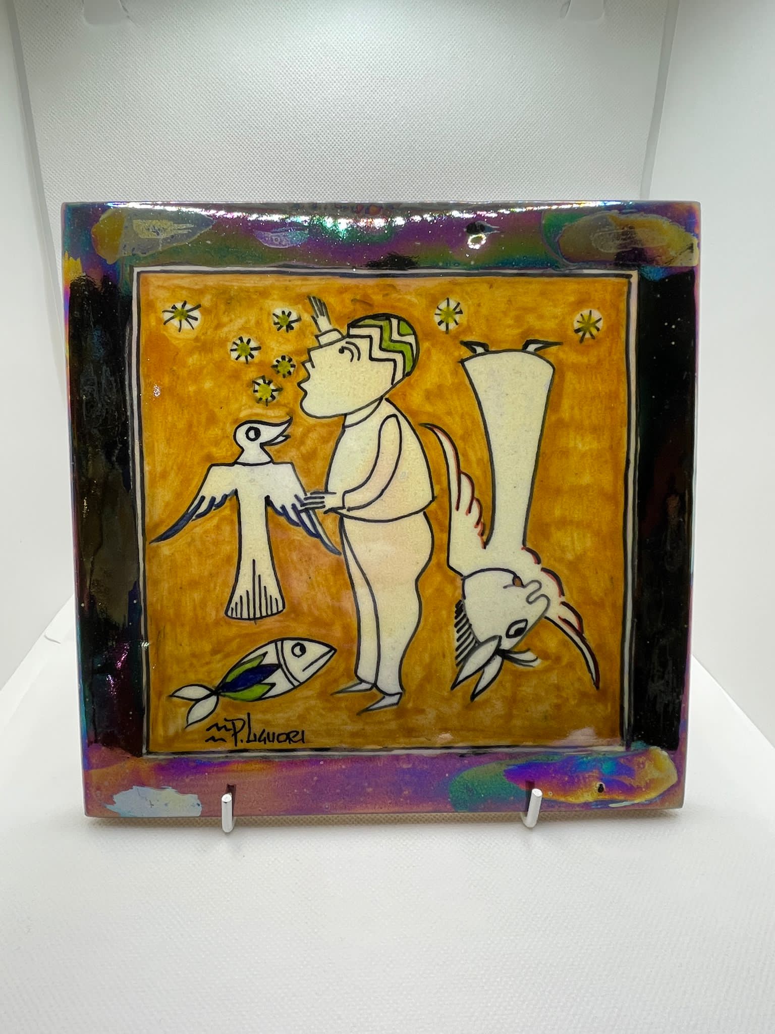 Le riggiole che vi presentiamo hanno dimensione 20×20 cm, realizzate in parte con tecnica classica, e in parte con la tecnica dei lustri dal Maestro Pasquale Liguori in esclusiva.