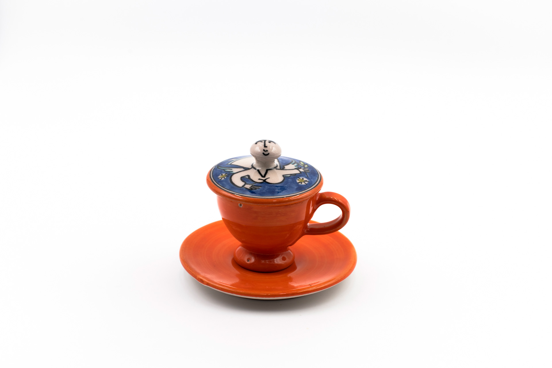 Il Maestro Pasquale Liguori ha realizzato in esclusiva per il Ristorante La Caravella queste bellissime tazzine da caffè con piattino e coperchio disegnato.