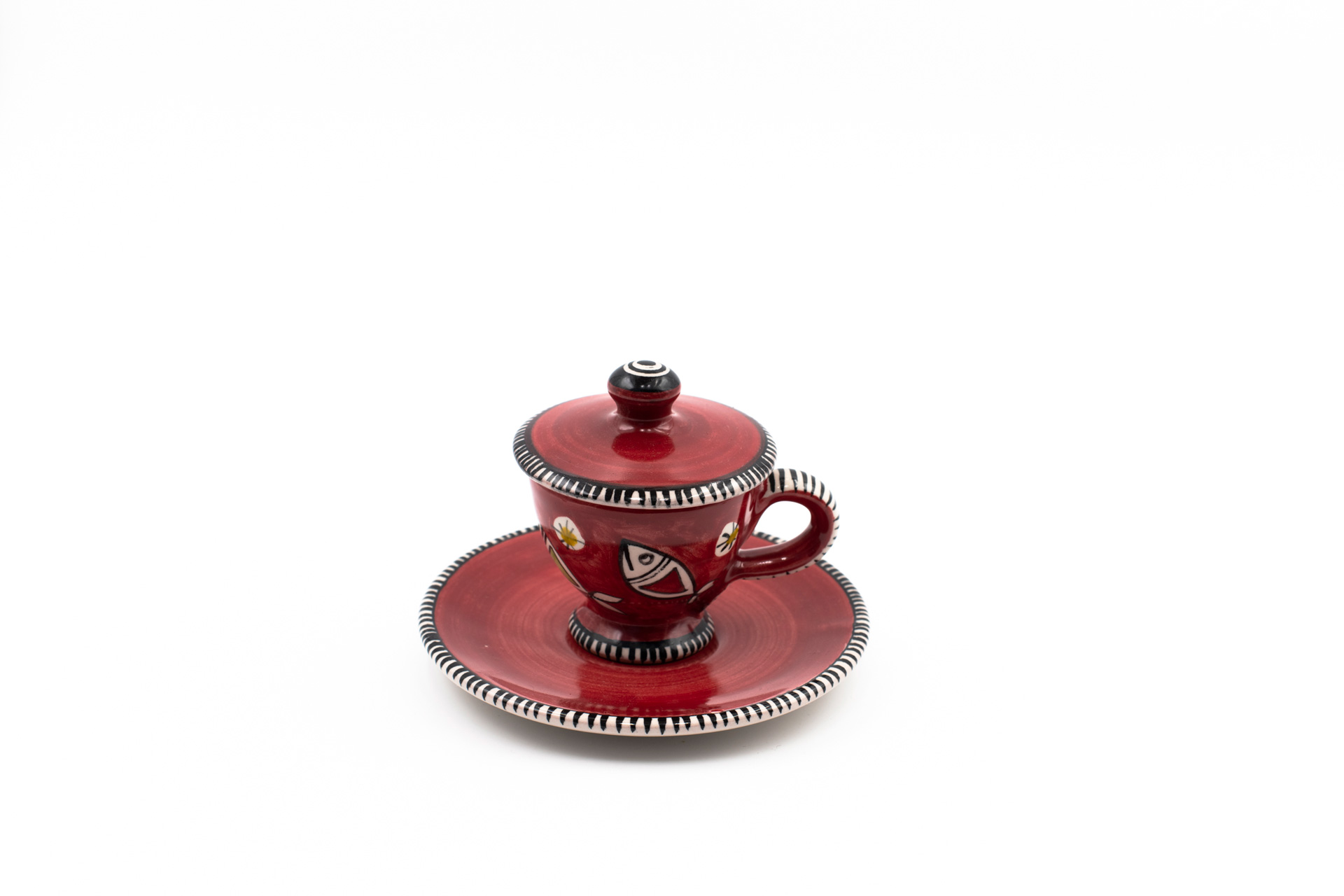 Il Maestro Pasquale Liguori ha realizzato in esclusiva per il Ristorante La Caravella queste bellissime tazzine da caffè con piattino e coperchio disegnato.