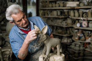 Da qualche tempo i ciucci di Filuccio Apicella sono esposti nella galleria di Antonio Dipino. Una transumanza delle sue creature in Costiera, che gli ricorda forse quando negli anni ’50 l’attraversava in bicicletta fino a Positano per modellare ceramiche per Irene Kowaliska. Qualche indizio induce a ripensare agli asinelli presenti in quel laboratorio, che appaiono troppo “vietresi” per poter essere attribuiti all’artista polacca si era trasferita da Vietri a Positano.